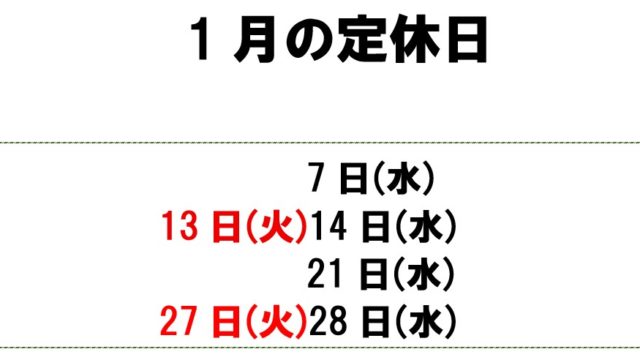1月の定休日